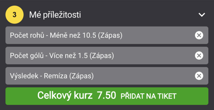 Až budeš mít BetBuilder připravený, stačí kliknout na zelené tlačítko PŘIDAT NA TIKET. Posledním krokem je tlačítko VSADIT spolu s výší sázky. Aby se tvůj tiket zezelenal, musí vyjít samozřejmě všechny příležitosti, které jsi v rámci BetBuilderu nakombinoval. Tak hodně štěstí!